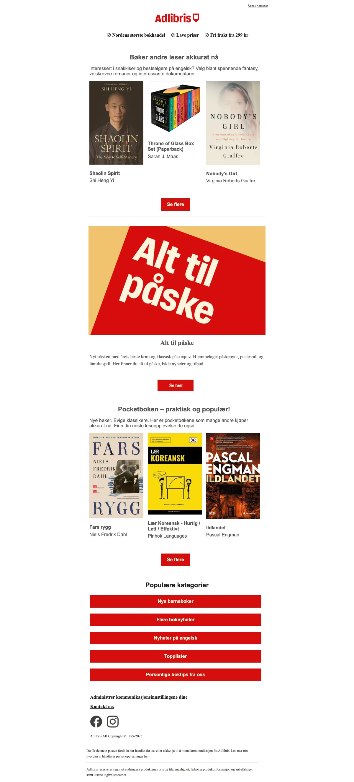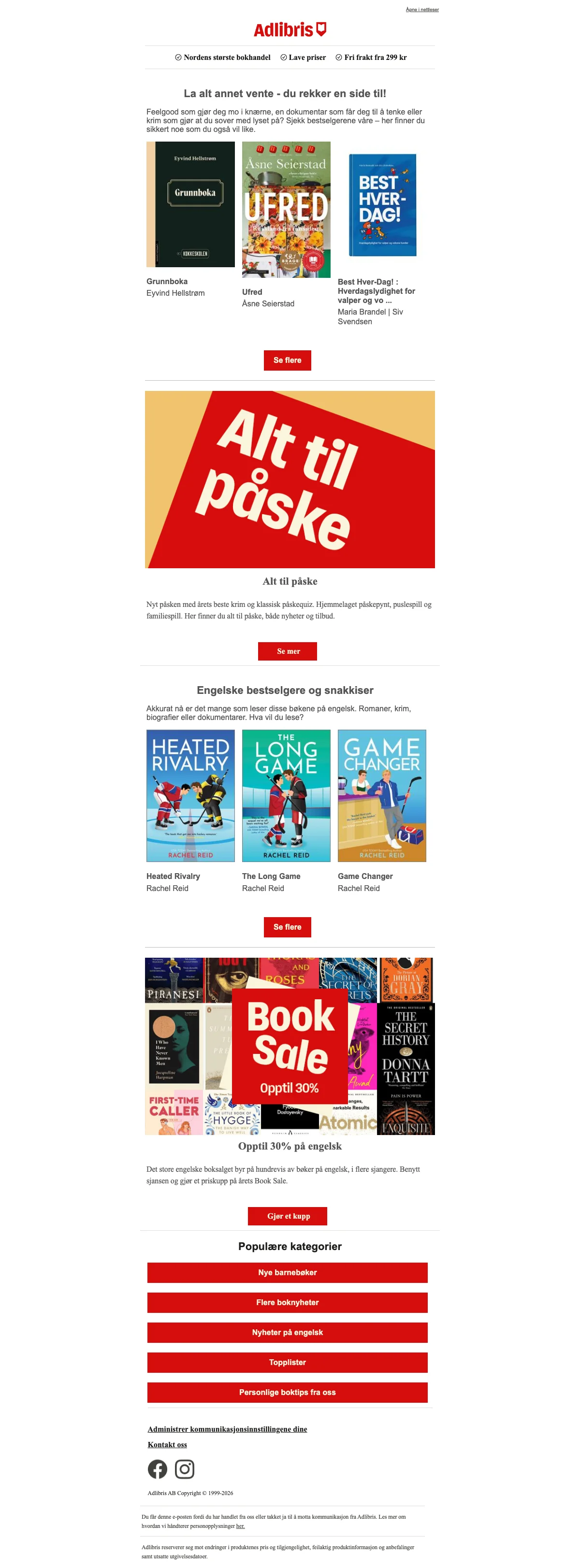 Adlibris Rabatt Norge - april 2026