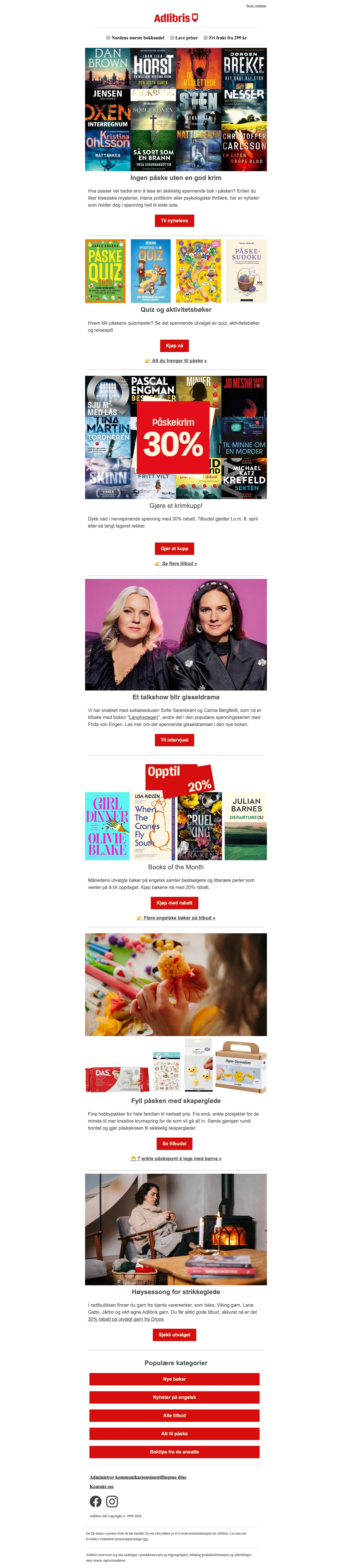 Adlibris påsketilbud krimkupp 30% rabatt på spennende krimbøker