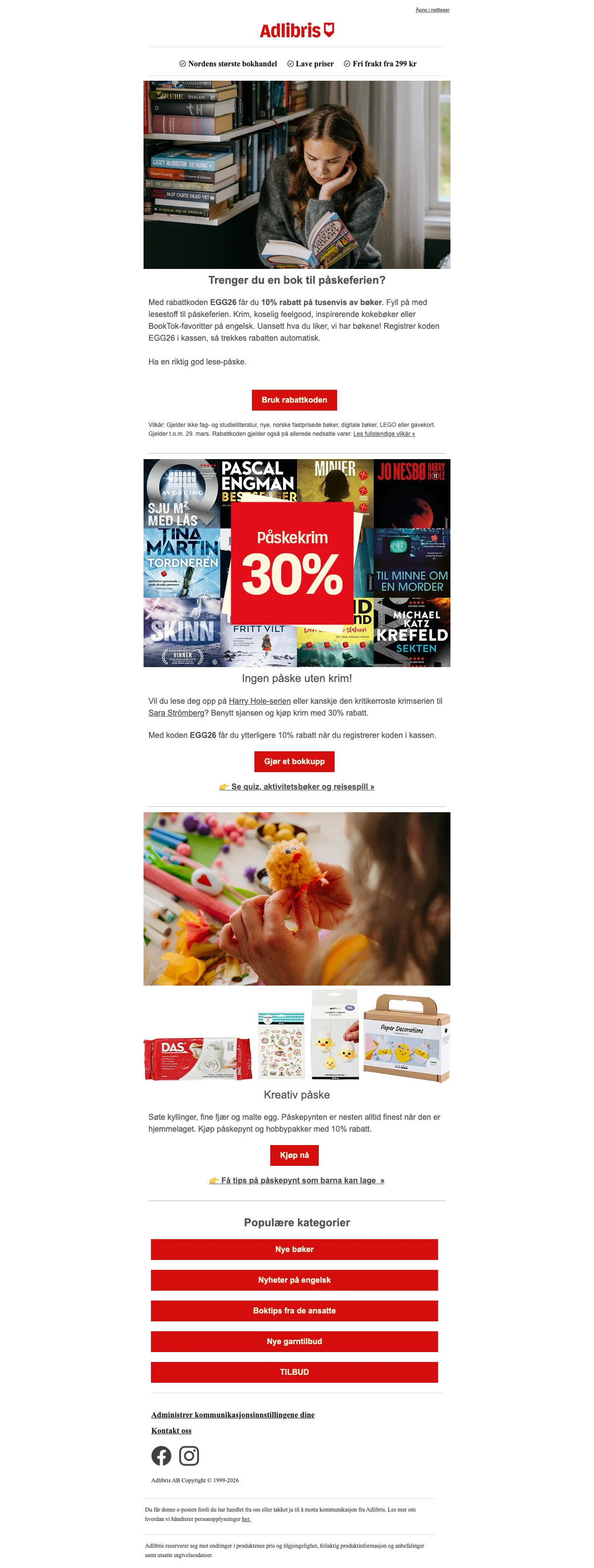Adlibris påsketilbud: bøker og hobbykit — 10% rabatt med kode