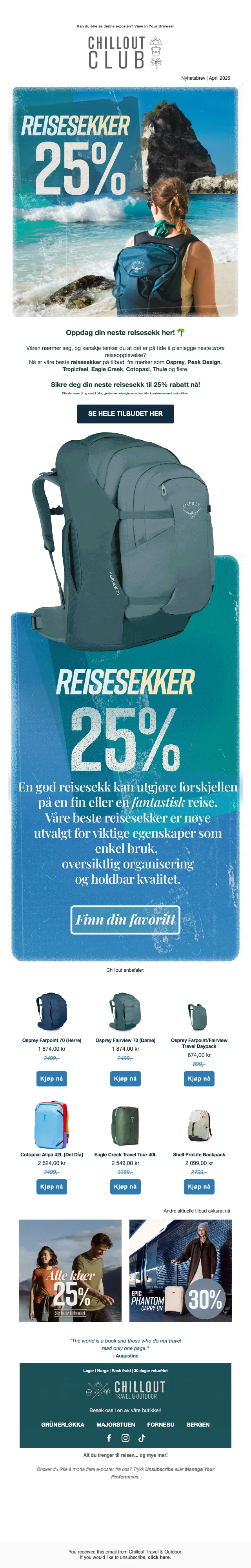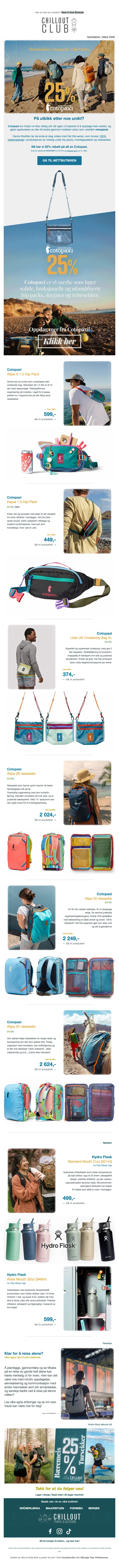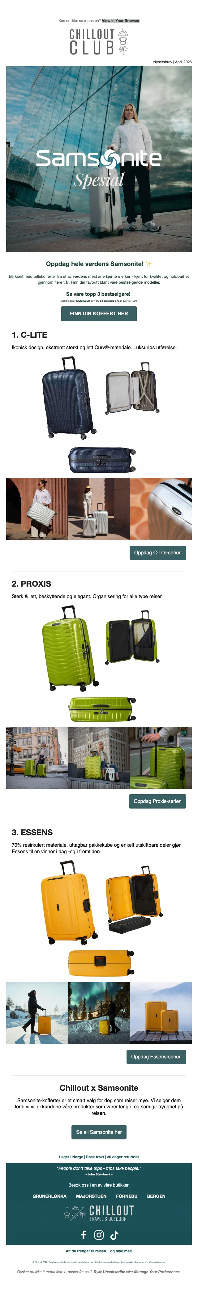 Gjør deg klar for tur med 10% rabatt på turutstyr hos Chillout. Alt fra telt og soveposer til campingkjøkken, klar for ditt neste utendørseventyr.