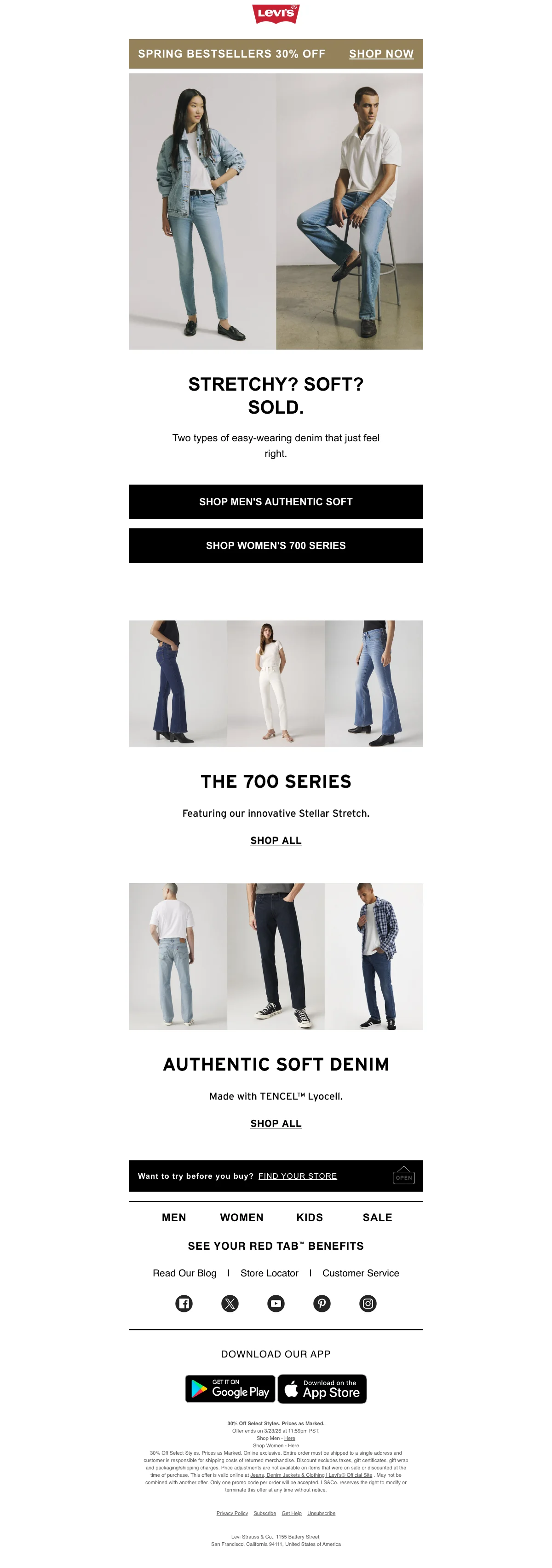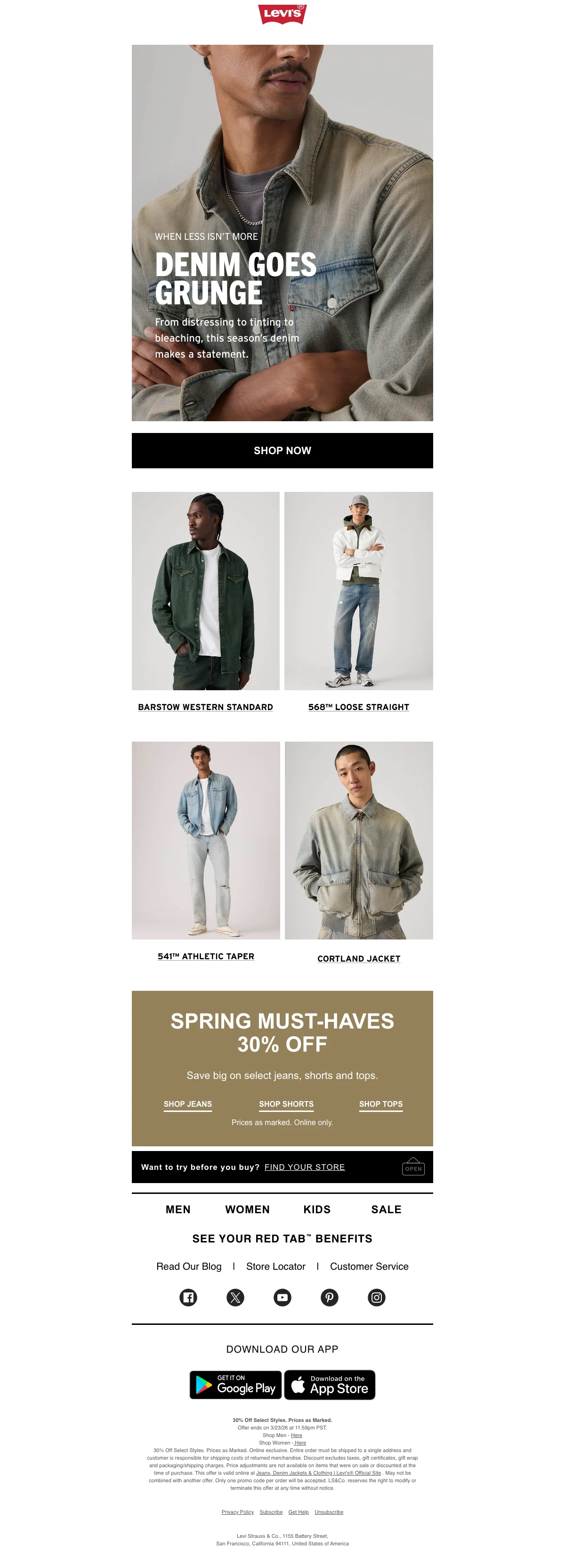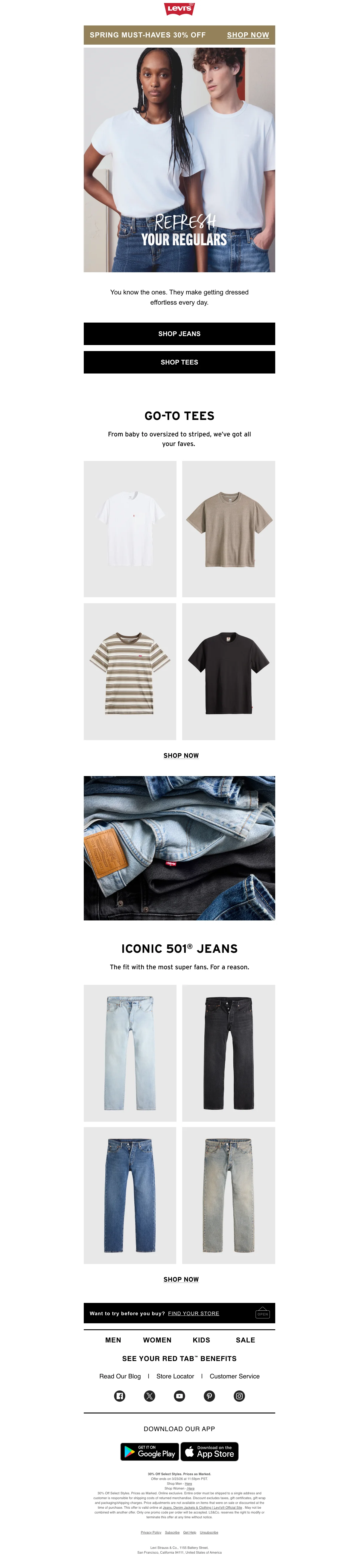 Bli kjent med Levi's og spar stort på ditt første kjøp. Abonner på våre e-poster og motta 20% avslag pluss gratis frakt på ditt første kjøp. Det er det perfekte tidspunktet å prøve Levi's kvalitet og komfort, fra jeans til tilbehør. Med vårt nykundetilbud kan du oppdatere din stil eller finne den perfekte gaven til noen spesiell, uten å bryte banken. Velkommen til Levi's familien!
